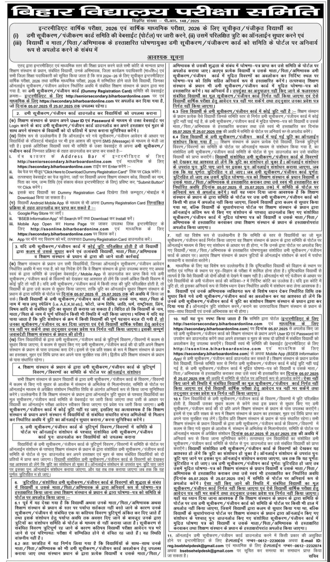 - डमी रजिस्ट्रेशन कार्ड में सुधार करवाने की अंतिम तिथि: 25 जुलाई 2025