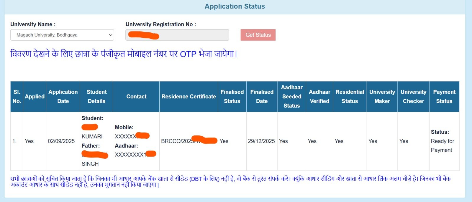 - अगर Application Status में Pedding दिख रहा हो तो तुरंत ही यूनिवर्सिटी/ यूनिवर्सिटी के पोर्टल पर कांटेक्ट करें।